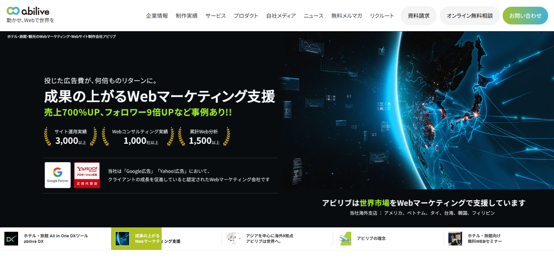 宿泊・観光業に強いWeb制作グループで、「ベトナム向けWebサイト制作」メニューを持つのが特徴です。インバウンドや海外向け集客の実績が豊富で、ホテル・観光施設・自治体などに対し、ベトナム人旅行者が知りたい情報と導線を踏まえたサイトを提案してくれます。